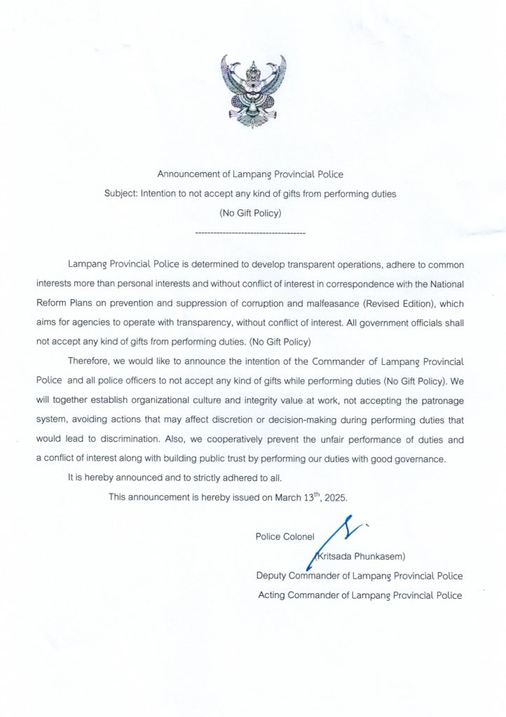 สภ.ทุ่งฝาย จว.ลำปาง แจ้งประชาสัมพันธ์ ระบบร้องเรียน / ร้องทุกข์ออนไลน์ ของสำนักงานจเรตำรวจ (เจ-คอมส์