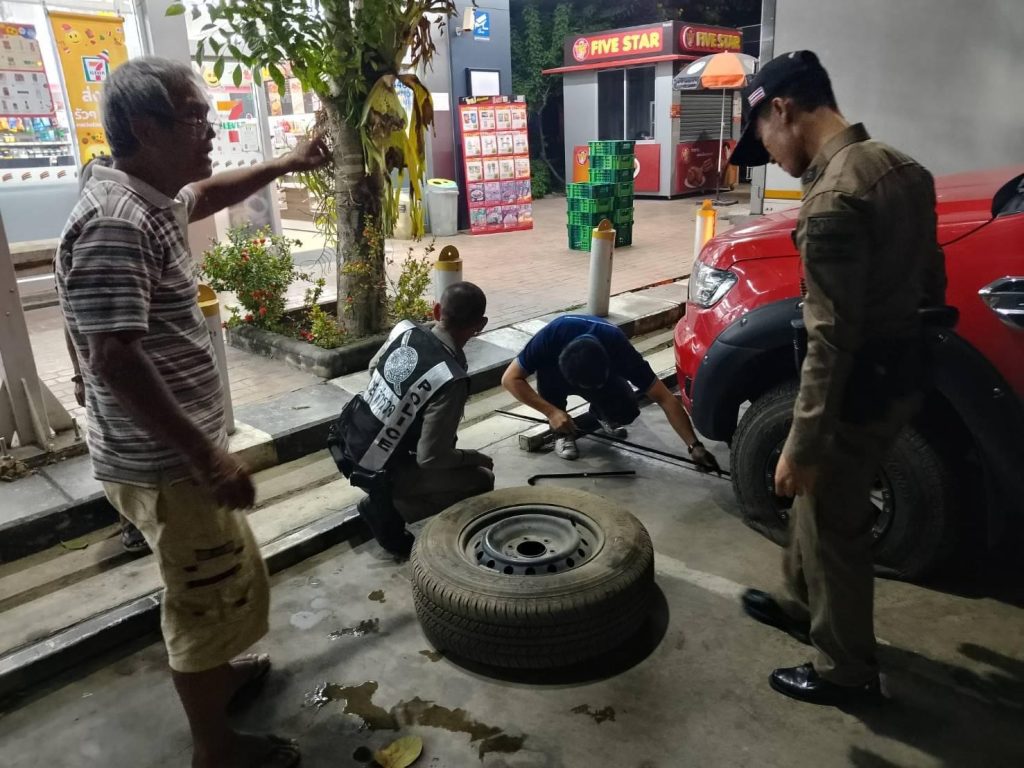 วันที่ 11 ธ.ค. 2566 เวลา 20.40 น. ร.ต.อ.อนิรุต เซมา รอง สว.สส.สภ.ทุ่งฝาย ร้อยเวร 20 พร้อมด้วยสายตรวจรถยนต์ 201 ได้รับแจ้งเหตุจาก 191 ประชาชนขอความช่วยเหลือ รถยางรั่ว จึงได้ออกปฏิบัติหน้าที่ตามเหตุรับแจ้ง พบรถยนต์กระบะยางรั่วอยู่บริเวณ ปั๊มน้ำมัน ปตท.ท่าโทก ต.ทุ่งฝาย อ.เมืองลำปาง จ.ลำปาง จึงได้ช่วยเหลือโดยการเปลี่ยนยางอะไหล่ ร่วมกับพลเมืองดี อีก 1 ท่าน รถยนต์ดังกล่าวสามารถเดินทางต่อได้ตามปกติ