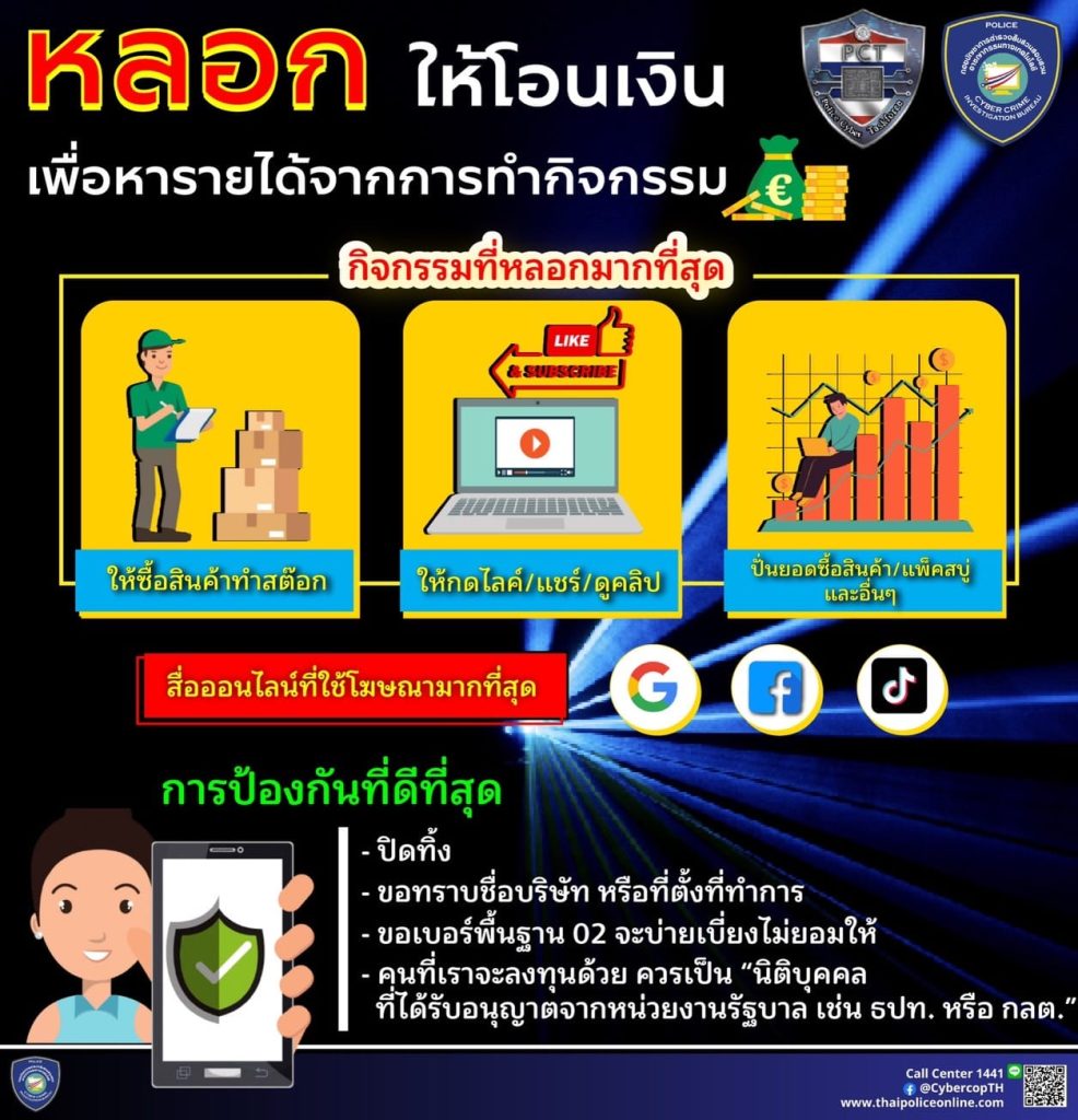 2. หลอกให้โอนเงินเพื่อหารายได้จากการทำกิจกรรม