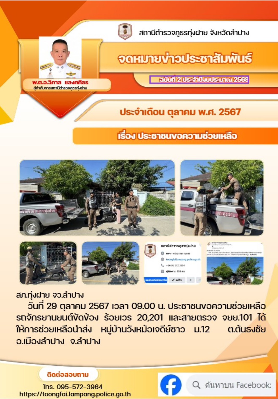 สภ.ทุ่งฝาย จว.ลำปาง ให้การช่วยเหลือประชาชน