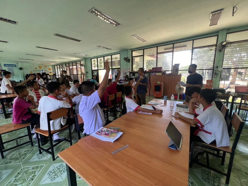 วันที่ 14 ก.ค.66 เวลา 14.30 น.โดยการอำนวยการของ พ.ต.อ.วิภาส แสงศศิธร ผกก.สภ.ทุ่งฝาย มอบหมายให้ พ.ต.ต.โกศล วงศ์รินทร์ สวป.สภ.ทุ่งฝายพร้อมเจ้าหน้าที่ตำรวจ สภ.ทุ่งฝาย ทำการอบรมให้ความรู้ วัคชีนไซเบอร์ แก่นักเรียน ชั้นมัธยมศึกษาปีที่ 1- มัธยมศึกษาปีที่ 3 โรงเรียนธงชัยวิทยา และคณะครู เผยแพร่ประชาสัมพันธ์การป้องกันการถูกหลอกลวงออนไลน์ เพื่อไม่ให้ตกเป็นเหยื่อของอาชญากร โดยเน้นรู้ทันกลโกง ไม่เชื่อ ไม่รีบ ไม่โอน สร้างภูมิคุ้มกันภัยทางออนไลน์ และทำข้อสอบทดสอบความรู้ จำนวน 40 ข้อ ได้รับความตั้งใจและสนใจ ในการรับการอบรมเป็นอย่างดี